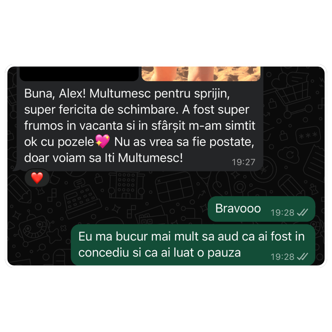 Dacă are sens pentru amândoi, îți construiesc planul care să te ducă la cele mai bune rezultate.